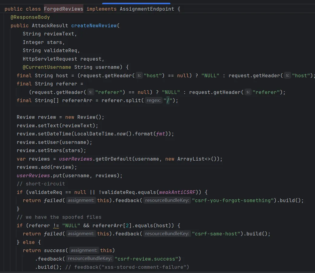 可以看到这里只需要满足validateReq 不为空且和weakAndtiCRSF匹配,这个值前端是已给出的,还有referer的值不为空时不能和host的域相等