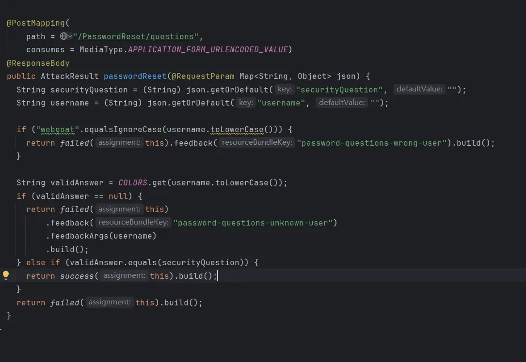 成功条件是WEBGOAT_USER.equalsIgnoreCase(user)