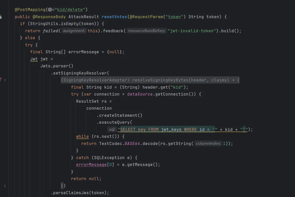执行SQL查询,根据kid从jwt_keys表获取对应的密钥