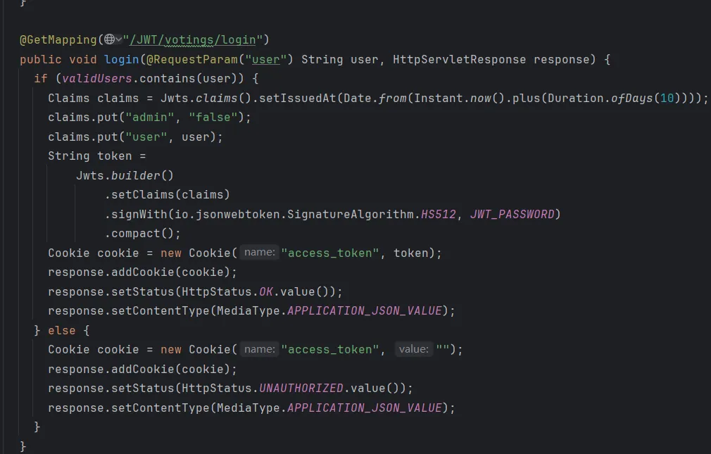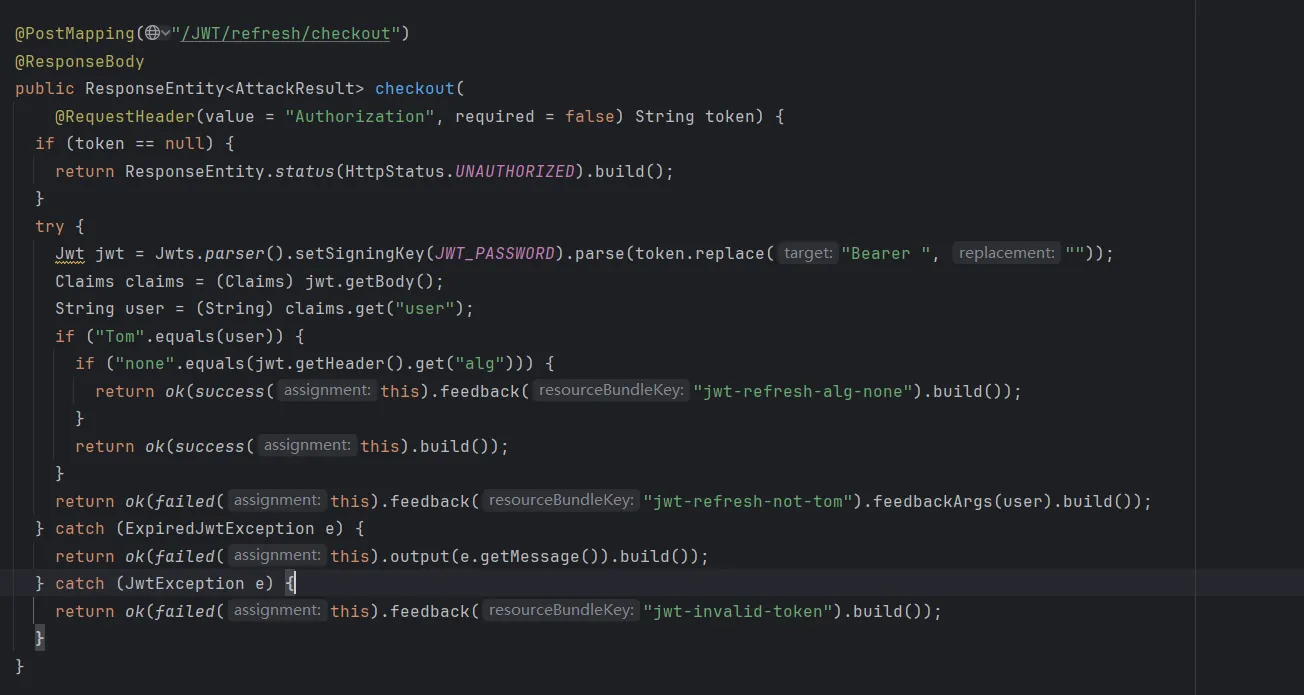 其中:JWT_PASSWORD = TextCodec.BASE64.encode("victory");//注意密钥