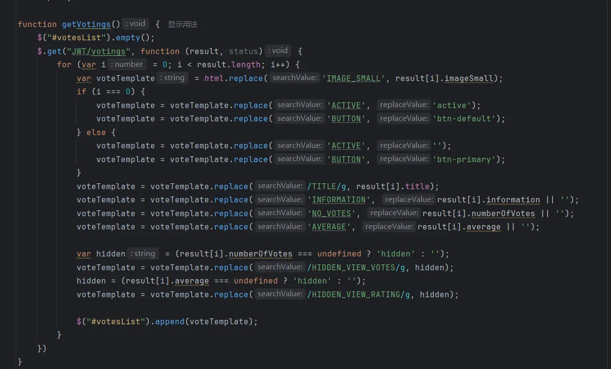通过$.get("JWT/votings")从服务端获取投票项列表