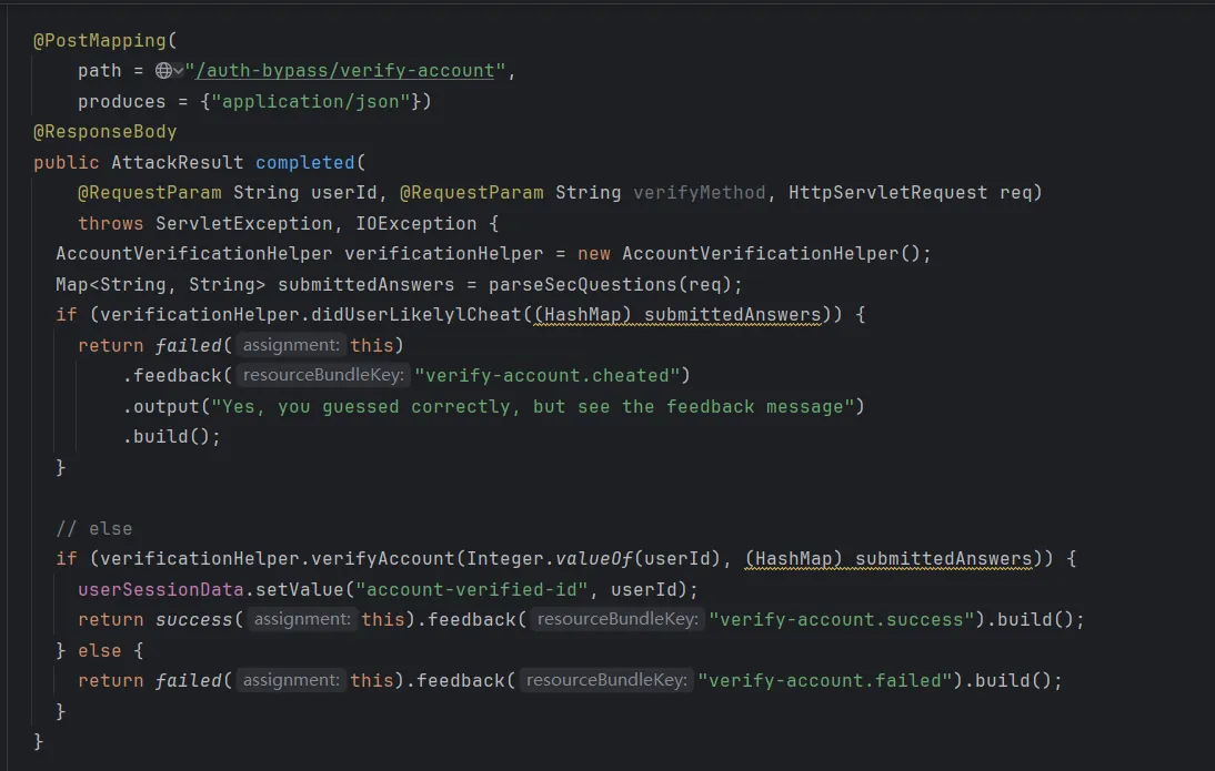 .equals(secQuestionStore.get(verifyUserId).get("secQuestion0"))) {