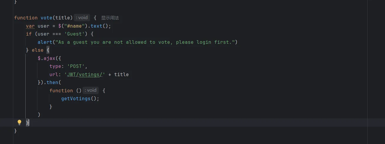 通过$.ajax POST请求发送到JWT/votings/{title}端点