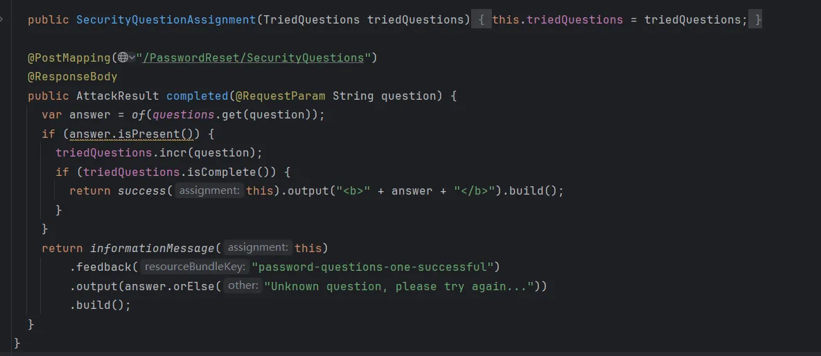 这里直接定义了用户ID和用户的问题关联并将它们存入了secQuestionStore这个变量