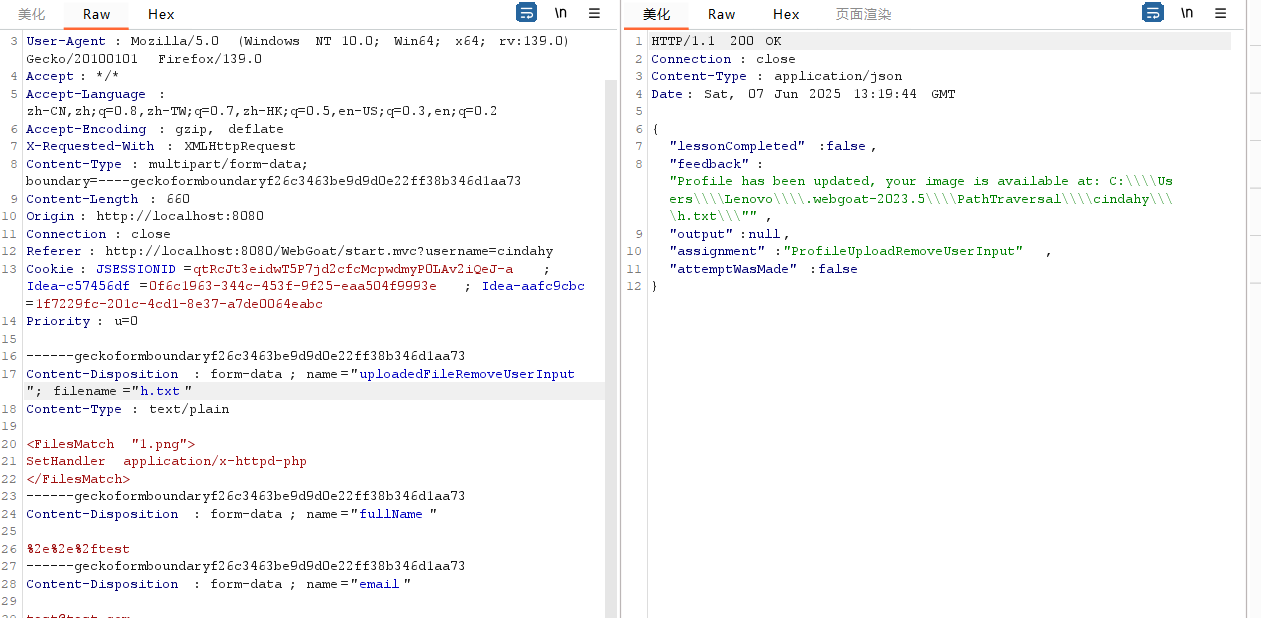 这里是把test文件传到了 C:\Users\Lenovo\.webgoat-2023.5\PathTraversal\cindahy