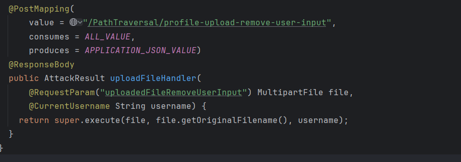 从前端可以看到是往此路由提交参数的"/PathTraversal/profile-upload"