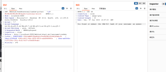 关注到GET /WebGoat/PathTraversal/random-picture这一行,尝试像右边一样构造