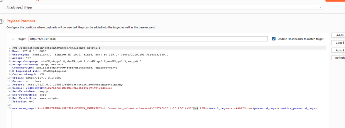 1' or substring(password,1,1)='t';-- 获取列名爆破密码SQL Injection (intro)