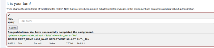 update employees set department ='Sales' where first_name='Tobi';源码: