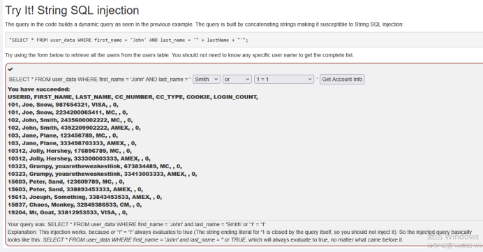 若显示已有此用户则说明此语句正常执行,因为没有(1' or '1'='1)用户,说明此处有sql注入点