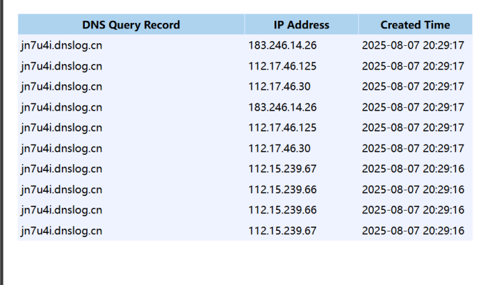 dnslog.cn会为每个用户生成唯一子域名,当目标系统解析此域名时,dnslog会记录查询日志,并进行可视化展示,所以可以借此判断是否存在漏洞点。