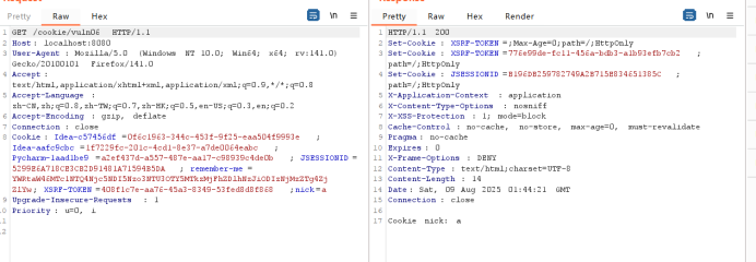 </html>受害者在登录状态访问此恶意界面之后,浏览器会自动提交表单,向 http://localhost:8080/csrf/post 发送 POST 请求,且请求会携带受害者的合法会话凭证,由于未验证csrf令牌,服务器误认为是用户的合法操作,执行并返回CSRF passed,攻击成功。
