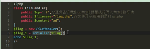 会自动调用destruct魔术方法,由于两个op比较的严格性不同,进行绕过,首先将op=' 2'的类序列化,将序列化后的内容传入str