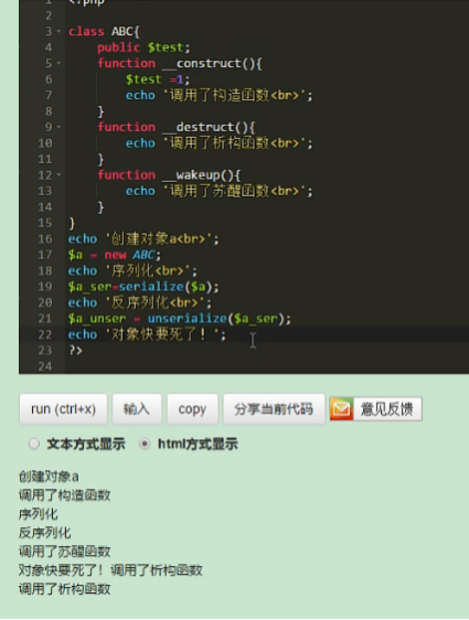 unserialize() //将字符串还原成一个对象