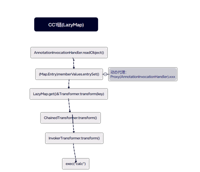 上一篇文章中我们分析了CC1 链当中的 TransformMap 的反序列化攻击,这次补充一下正版的CC1链