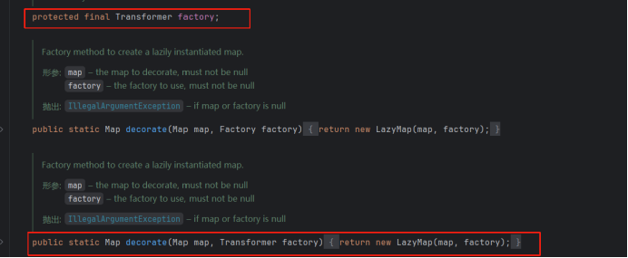 InvocationHandler invocationHandler = (InvocationHandler) declaredConstructor.newInstance(Override.class, lazydecorateMap);