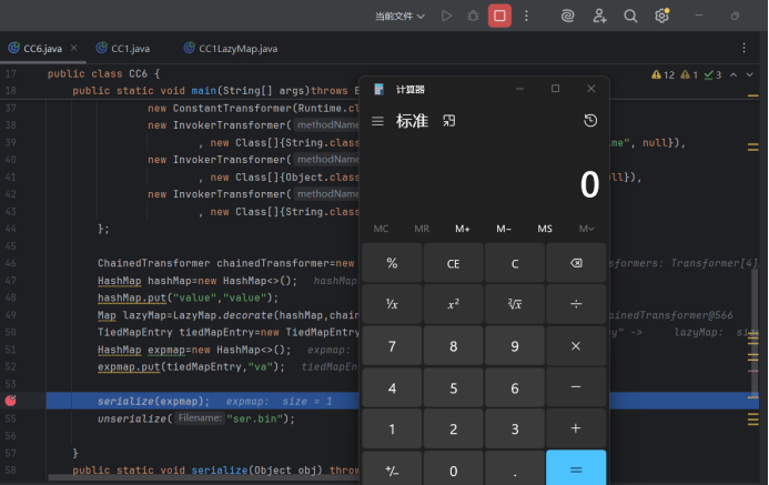 }但是这里打断点调试会发现在序列化的时候就会弹出计算器