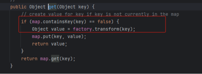 map.remove("aaa") 移除map类型里面的key值内容,确保了后续调用 lazymap.get(key) 时,key肯定不存在,一定会去调用工厂Transformer。