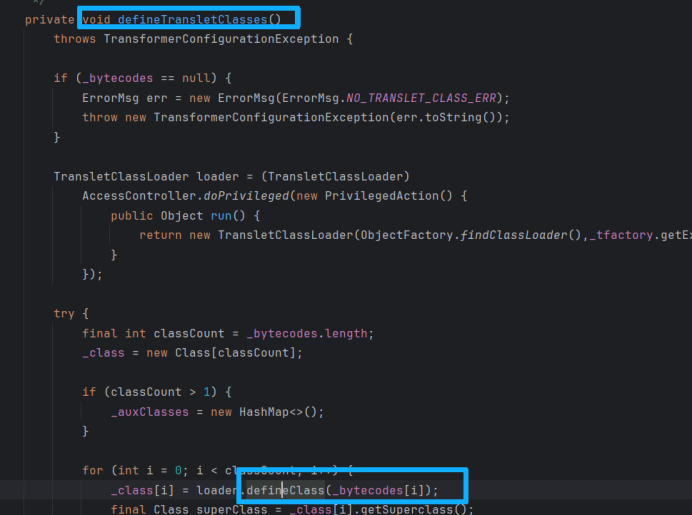 下面为在TemplatesImp类中defineClass方法的传播过程