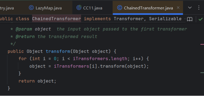 ChainedTransformer chainedTransformer=new ChainedTransformer(transformers);