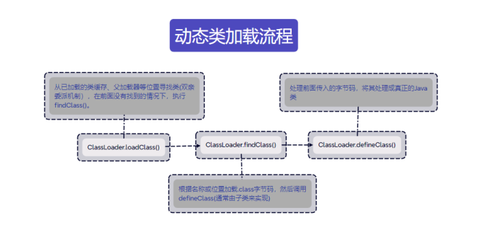 动态加载过程如图,将Calc.class传入defineClass,让它加载此恶意字节码,