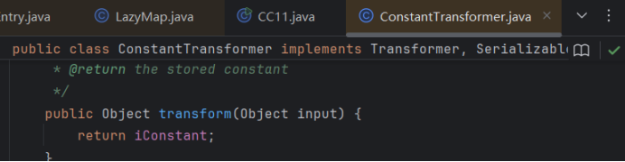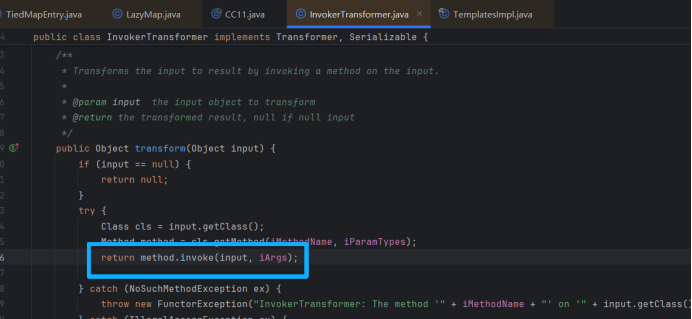 因为InvokerTransformer方法的transform中调用了invoke,那么可以借此触发此函数