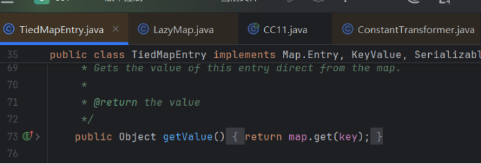 Map decoratemap=LazyMap.decorate(hashMap,chainedTransformer);现在的目的是调用decoratemap的get方法