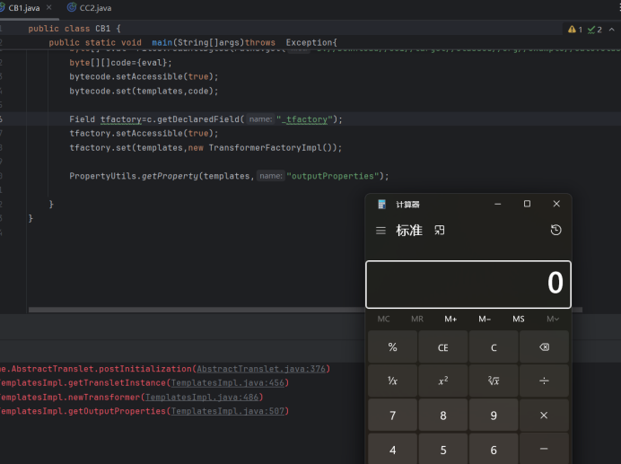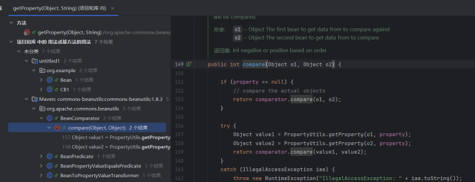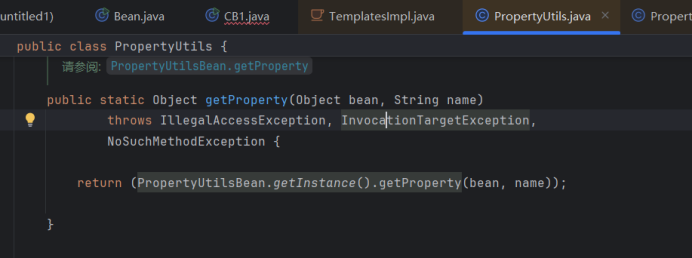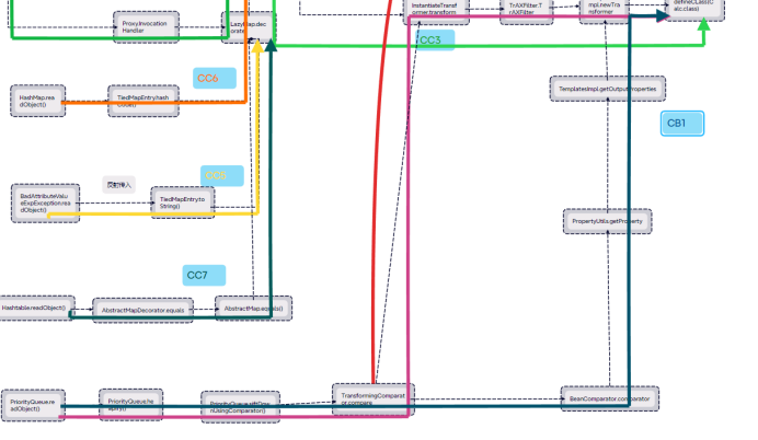 所以这条CB1链子和CC2链子的区别就是把中间改了一下,不再借用InvokerTransformer方法调用TemplatesImpl.newTransformer方法,而是借用BeanComparator.compare->PropertyUtils.getProperty->TemplatesImpl.newTransformer进行恶意执行