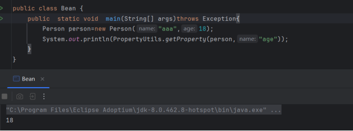 System.out.println(PropertyUtils.getProperty(person,"age"));