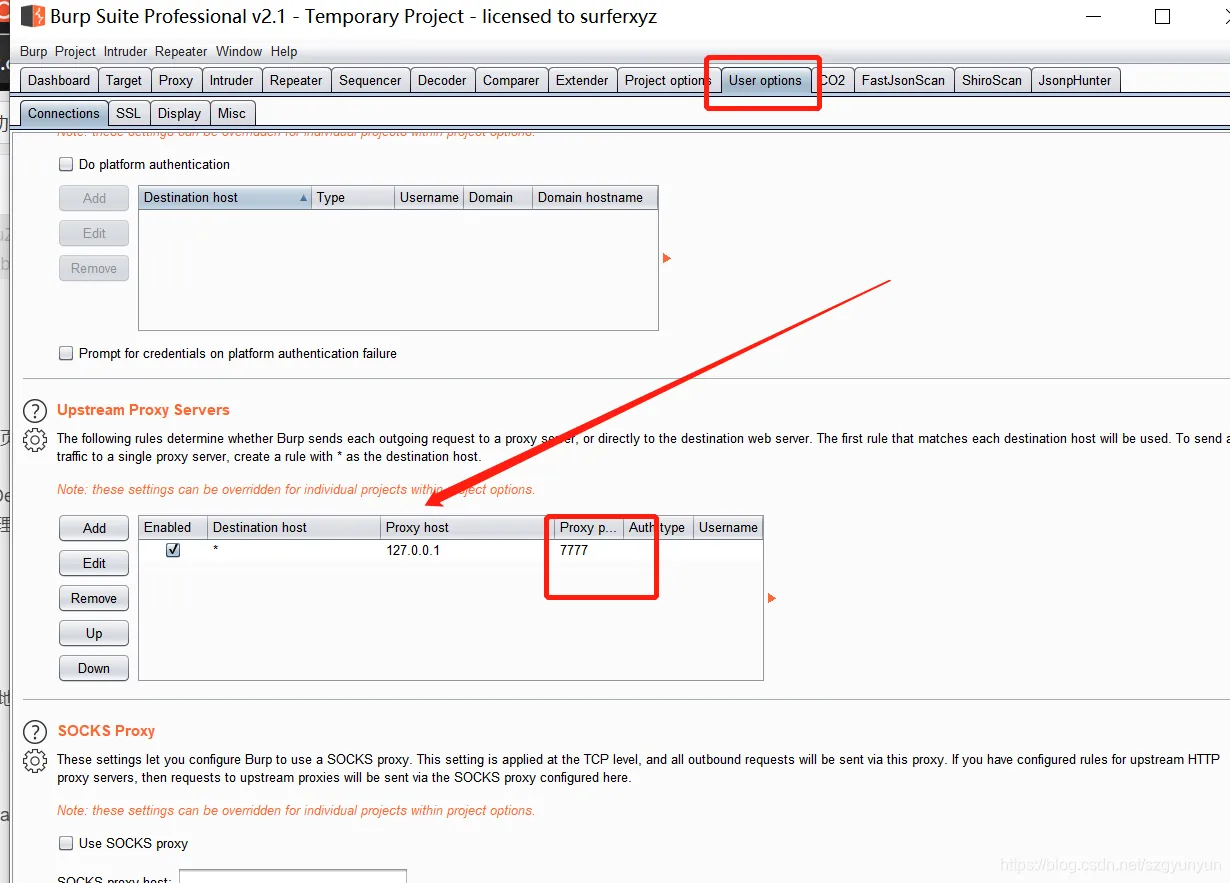 浏览器 → Xray(7777) → Burp(8080) → 目标