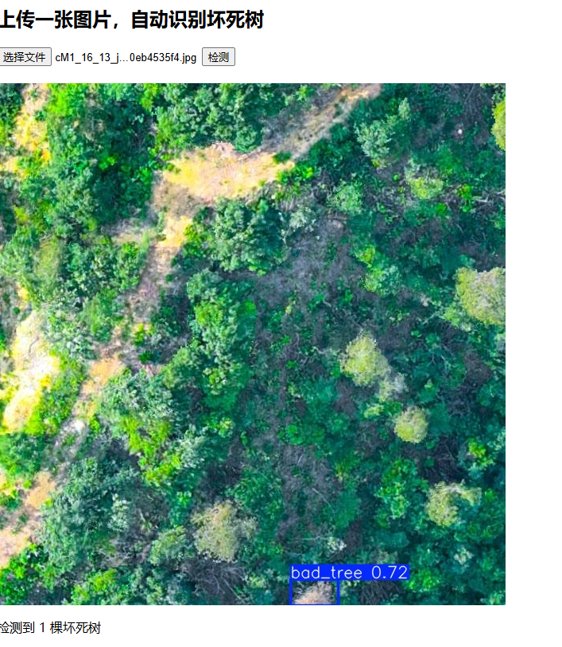 到目前为止,我们基于yolov11的深度学习模型,搭建了一个能简单识别松材线虫病的网站,没有什么深入的东西,感觉都很框架。