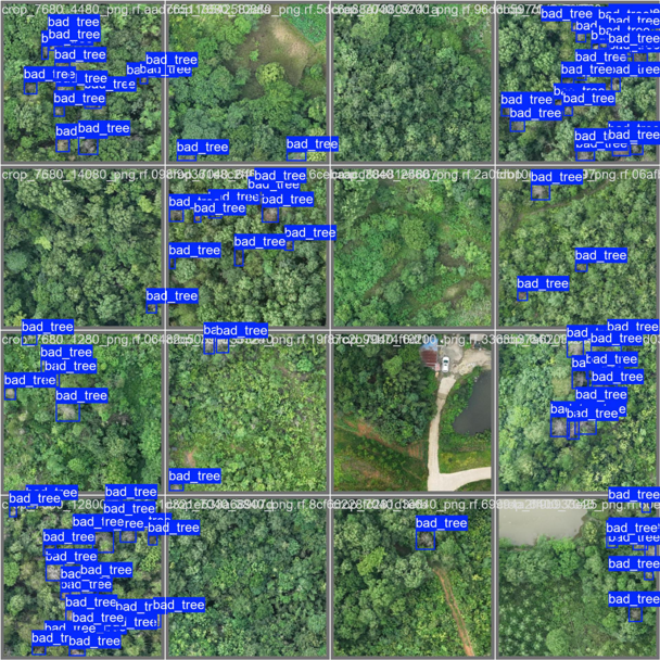 内容为图片中检测到坏死的树以及坏死的树有几棵。