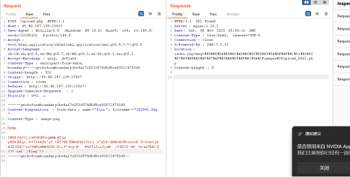 发现文件后缀名Php可绕过,上传之后访问网址就得到flag