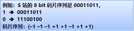 发送比特0:发送该码片序列的二进制反码