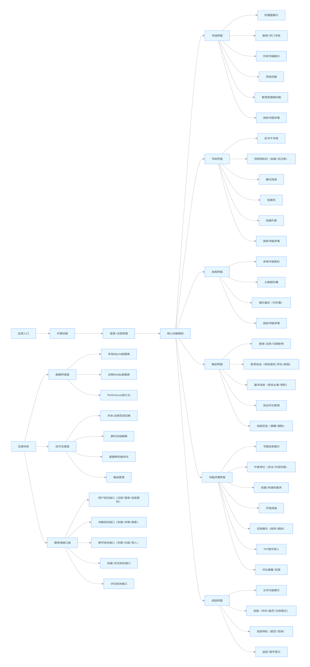 pages | *Page.ets | 存放所有页面组件,包括书城、书架、发现、我的等页面,以及书籍详情、阅读界面等。 |