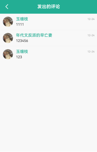 (5)发出评论板块,可跳转至对应页面查看用户当前所有的评论留言信息;