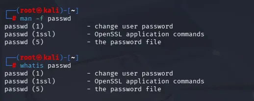 如图可以用man -f获取命令的类别信息,man -f命令与whatis命令是相同的。