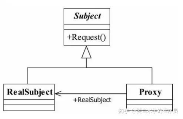 上图中,Subject是一个抽象类或者接口,RealSubject是实现方法类,具体的业务执行,Proxy则是RealSubject的代理,直接和client接触的。