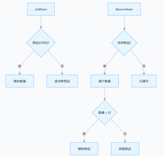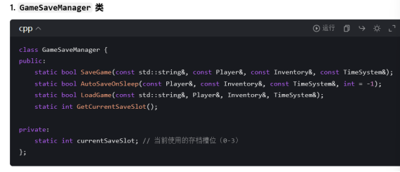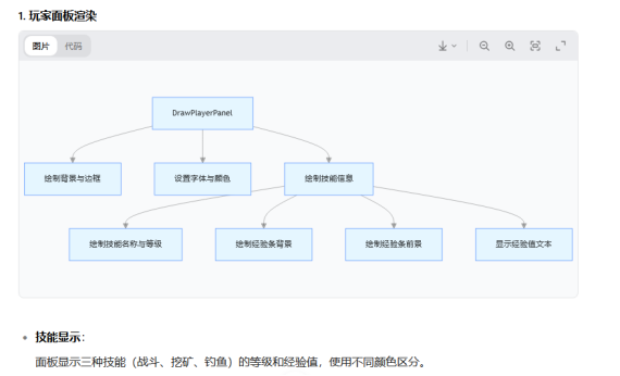 · 玩家攻击:AttackMonster 检测玩家攻击范围是否命中怪物 → 扣除生命值 → 生命值为 0 时掉落物品并添加到背包(Inventory 类)。