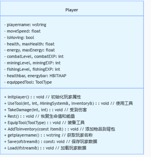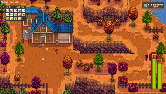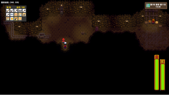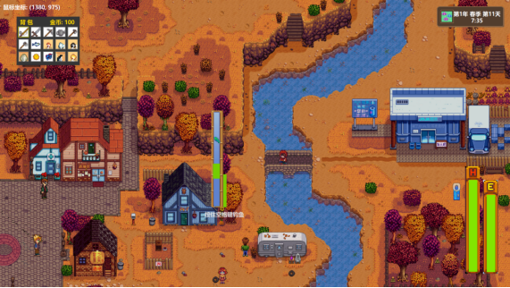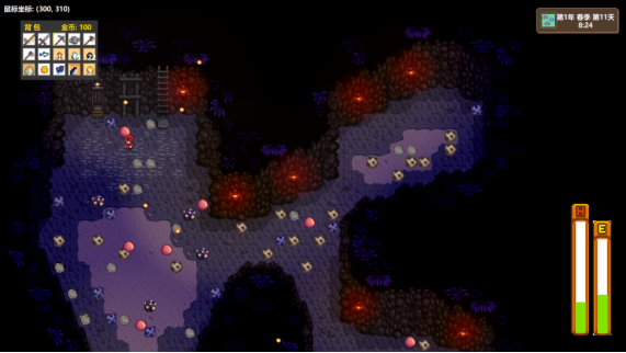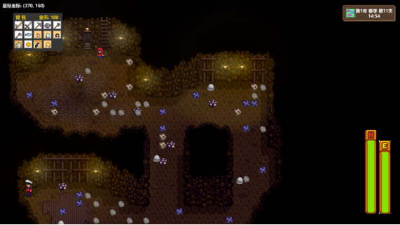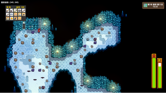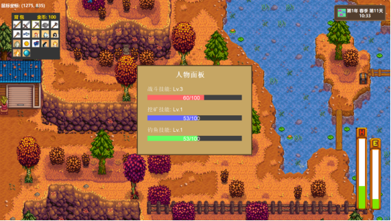 已实现钓鱼,挖矿,打怪,玩家,背包,npc,时间,存档读档这八大系统,基本实现了游戏的底层逻辑。