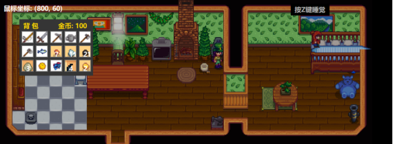 d) 在自己加靠近床,按z键就能睡觉,睡觉则在当前挡位自动存档