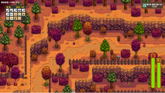 这是以星露谷物语这一游戏为方向开发的游戏,此为一个像素风的RGB游戏,现已实现钓鱼,挖矿,打怪,玩家,背包,npc,时间,存档读档这八大系统。