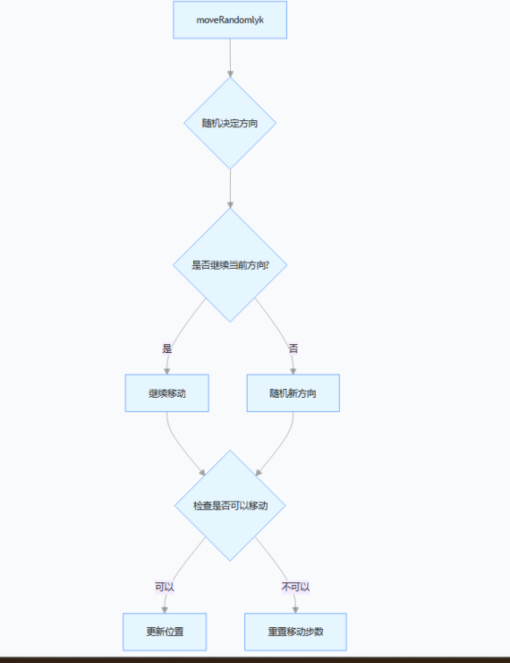MoveMonster → 遍历 monsters → 根据类型调用 UpdateMonsterPosition(受地形阻挡)或 UpdateMonsterPositionignore(无视地形)→ 更新坐标和朝向 → 渲染动画。
