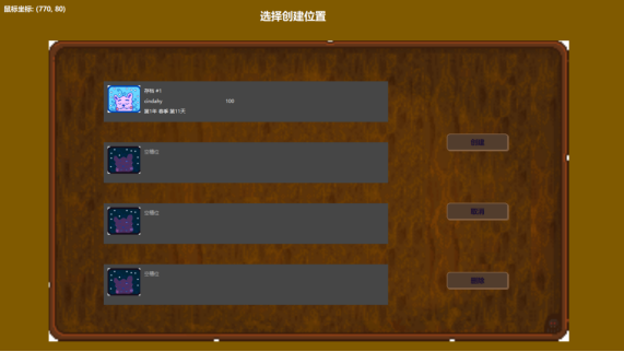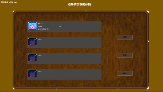 a) 在首页可以选择创建存档或者读档,读取玩家,背包,npc,时间等一系列信息