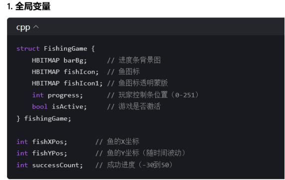 通过 fishingLevel 和 fishingEXP 影响钓鱼小游戏的难度和奖励。
