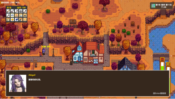 a) 游戏中加载了12个npc,可以给npc对话和送礼,左键对话右键送礼,当然送礼时需保证手中有物品